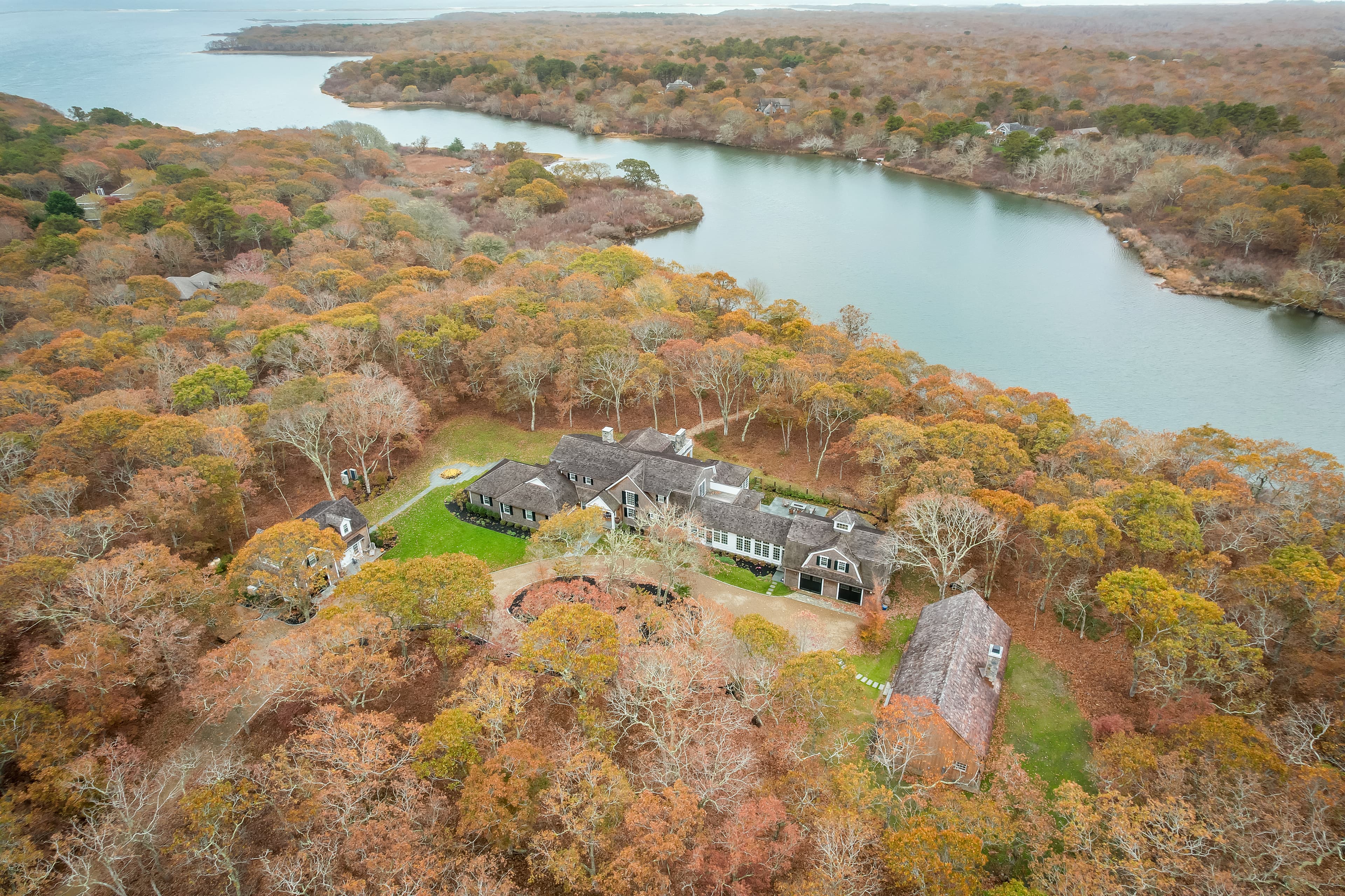 Luxury Martha’s Vineyard estate with a Main House, Guest House, Amish Barn, and Edgartown Great Pond views. Coastal living at its finest.